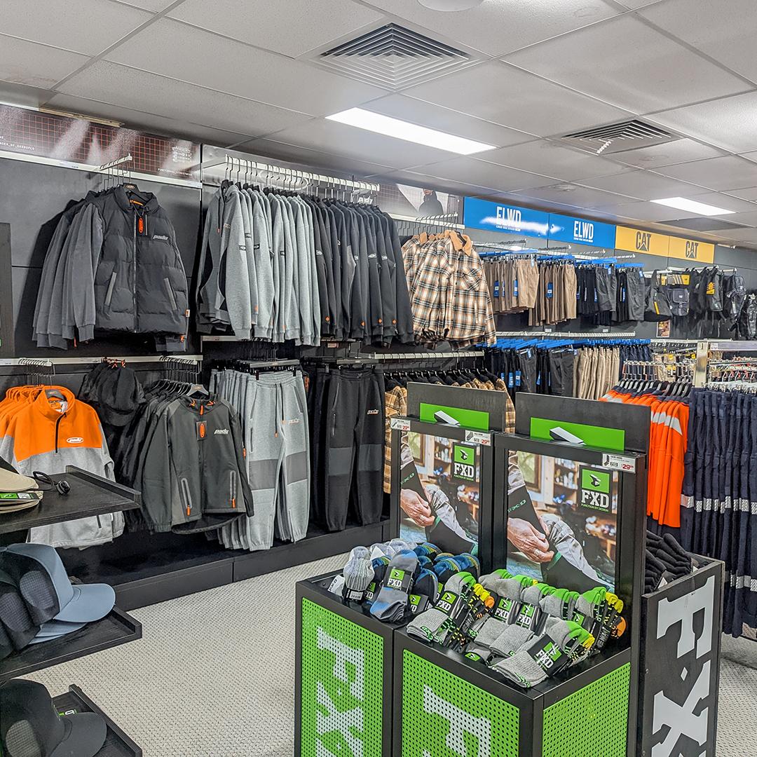 Home to all the biggest brands in workwear and safety, Workscene Penrith is your one-stop destination for men and women work clothing. Stocked with workwear tops, bottoms, hi-vis, safety footwear and PPE. Stocking brands like Hard Yakka, FXD, CAT, Blundstone and Steel Blue, you’ll be sure to find the right fit for any trade and purpose. Find a variety of 5.11 Tactical gear amongst an extensive range of apparel and safety footwear. Want to customise your apparel for your business? Head into Workscene Penrith and ask about the inhouse garment decoration. Choose to embroid or print on t-shirts, shirts, jackets, hats and be sure to stand out with your personalised kit. Find convenient parking at the front of the store along Batt St.